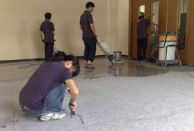 (2)打蠟使用專業打蠟機配合高級石材護理蠟對石材進行打蠟處理。